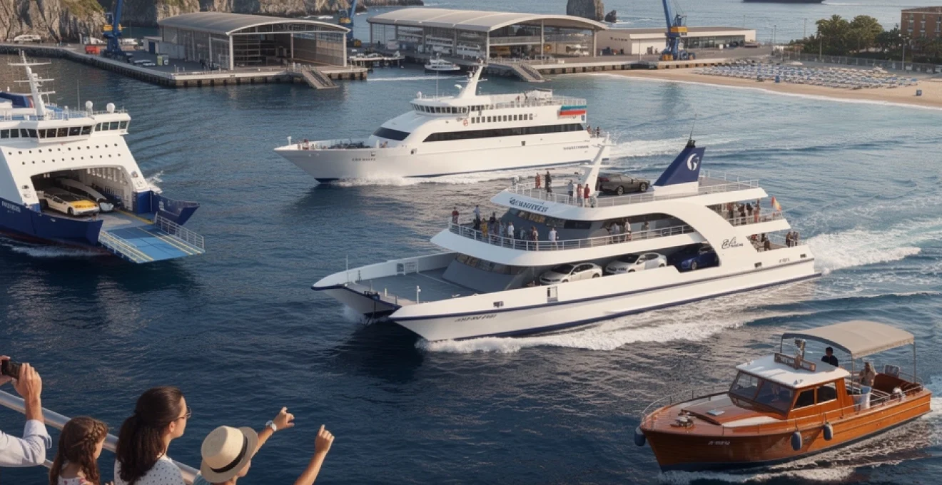 Les ferries côtiers sont généralement des monocoques rapides ou de petits catamarans, dotés d’un pont extérieur et d’un salon couvert. Vous voyagez sans véhicule, mais avec la possibilité de transporter valises et sacs de plage sans supplément majeur. Les tarifs, variables selon la saison, restent compétitifs : un aller simple Amalfi–Positano se situe souvent entre 8 et 12 €, tandis qu’Amalfi–Sorrente coûte autour de 20 €. Pour profiter pleinement de cette navette maritime, privilégiez les départs matinaux ou en fin d’après-midi, moments où la lumière met particulièrement en valeur les falaises calcaires et les villages pastel.